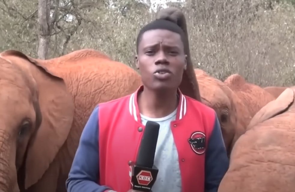 Kaunda was standing inside a sanctuary in Kenya, reporting on the damage humans are causing to the environment and the danger faced by a special group of elephants known as red elephants.