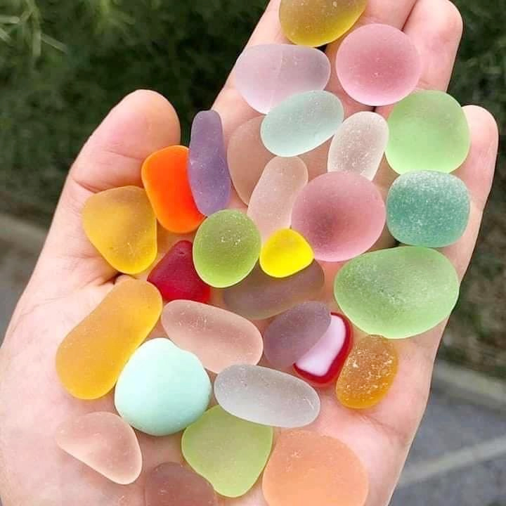 These are sea glass, and their story begins with broken bottles, jars, and glass objects made by people long ago. For many years, especially before modern recycling, glass waste was often thrown into the sea.