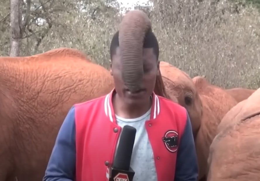 Cute Baby Elephant Steals Reporter’s Spotlight