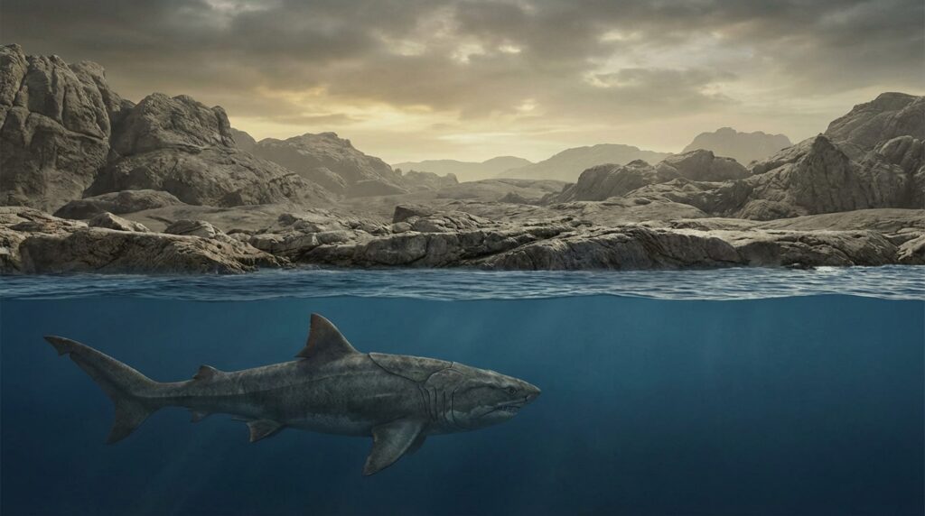 While the continents were completely empty and silent, the oceans were already teeming with massive and highly evolved predators. Sharks had completely conquered the planet long before the land was even remotely hospitable for complex life.