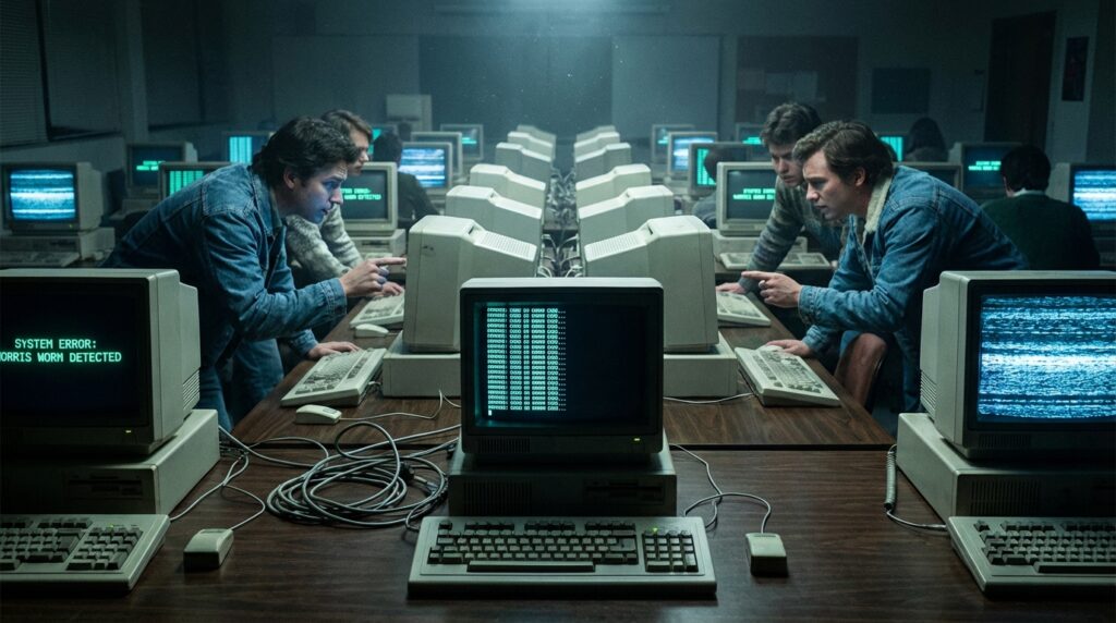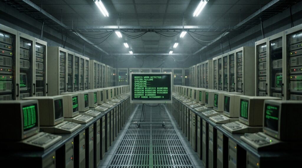 In the late fall of 1988 the internet was a very small and quiet place. It was mostly just scientists and military researchers sending simple text messages to each other. There were only about sixty thousand computers connected to the entire network. A young graduate student at Cornell University named Robert Tappan Morris got very curious about exactly how big this digital world really was. He decided to write a tiny piece of code to travel around and count the machines. He did not mean to destroy anything. He just wanted to draw a map.