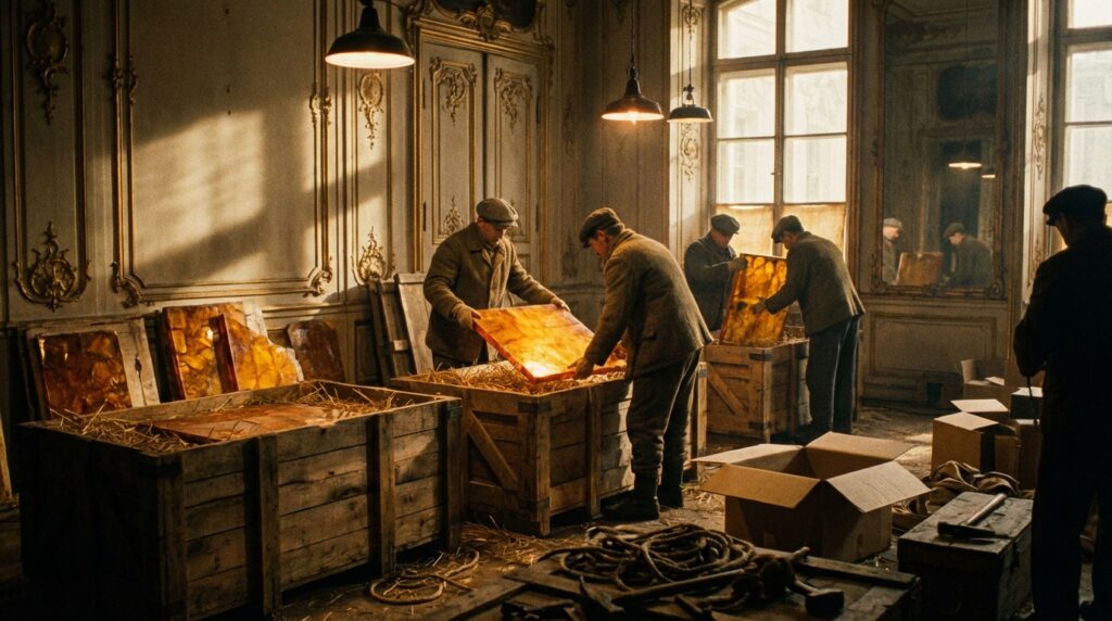 The trick failed instantly. The Nazi soldiers tore down the paper and brought in their own experts. They dismantled the entire masterpiece in just thirty six hours. They packed the glowing golden walls into twenty seven heavy wooden crates and shipped the massive fortune off to a castle museum in the German city of Königsberg.