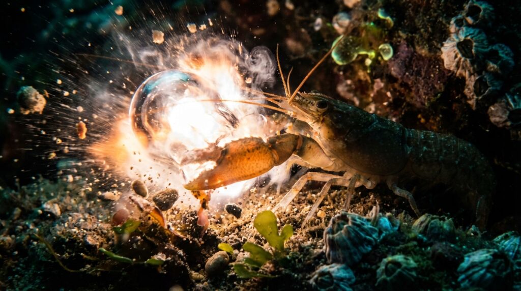 Meet the pistol shrimp. It does not have venom or massive jaws. Instead it carries a built in sonic weapon that defies the laws of physics. This little crustacean can snap its claw so fast that it literally boils the water around it. The resulting blast is one of the most violent and fascinating events in the natural world.