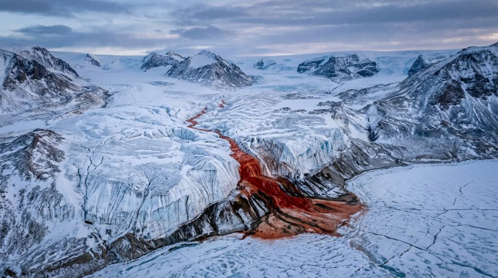 Pouring straight out of the pure white face of the Taylor Glacier is a massive waterfall of thick red liquid. It looks exactly like a giant bleeding wound in the ice. Explorers appropriately named it Blood Falls. For over a century, the bleeding glacier was a complete and terrifying mystery to the scientists who first laid eyes on it.