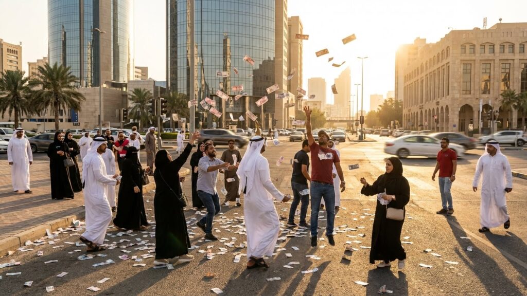 In 2015, between 2 and 3 million UAE dirhams (roughly $544,000 to $817,000) in bills fell from the sky over Kuwait City. For several minutes, it literally rained money. People stopped their cars in the middle of the street and ran around grabbing bills like they were in a game show.