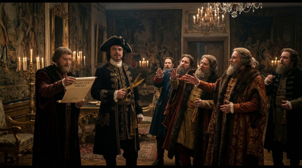 In the late 17th and early 18th centuries, Tsar Peter the Great of Russia was determined to modernize his country and align it with Western Europe. To him, the long, traditional beards worn by Russian men were a symbol of backwardness. His solution? A beard tax. If you wanted to keep your facial hair, you had to pay up and carry a special token as proof. Those who refused could have their beards forcibly and often painfully shaved. It was a dramatic and deeply unpopular policy, but it showed how serious Peter was about changing Russia’s image.